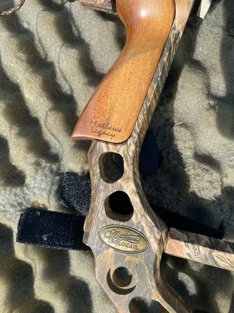 Matthews solo cam legacy bow & arrows & storage container. Foam knobs are a little sticky for some reason, don’t really know much about it , look over all the pictures.