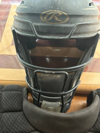 Rawlings Velo 2.0 Basebal Catchers Equipment Used 1 season (13u baseball). Excellent condition. No rips no tears. Special Edition (Black & Gold). NO/SCAE Approved for HS Players Set includes (as...