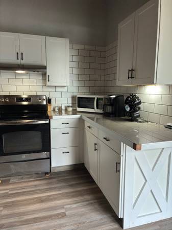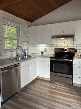 This is an extremely upscale house with all brand new kitchens and bathrooms, which include granite countertops, brand new kitchen cabinets, stainless steel appliances (including dishwasher and microwave ) plus washer/ dryer.
