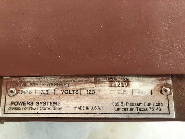 Power Systems wash tank 25-30 gallon capacity Mounted on castors Has light but needs bulb Call or text Cash only Pickup only Steve